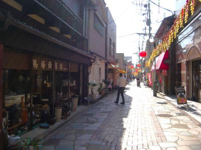江戸時代中期に中国からの交易の倉庫を建てるために、往時の海を埋め立てて出来た街で、東西南北を合わせて約250mの十字路は、長崎市の姉妹都市である福建省の協力で出来た石畳が敷かれた街です。