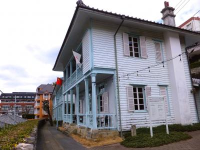 長崎市街地の東山手地区に在る「東山手洋風住宅群」は幕末から明治にかけて押し寄せた外国人居留地として建設した住宅地で、急勾配のオランダ坂を上った階段状の狭い敷地の急傾斜地を上下2段に造成して密集するように建つ7棟の洋風住宅群です。