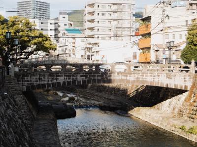 長崎市街地は観光通りから近い中島川に架かる中島川石橋群の一つ「眼鏡橋」は最も有名な観光スポットで、常に観光客が記念撮影をするところです。