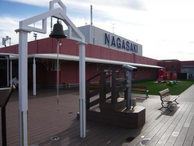 展望デッキには教会のイメージを模った長崎の鐘が有り、壁面に大きな幸運の羽・つばさに誰でも鳴らすことが出来る幸せの鐘、ちびっ子達に人気の芝生スペースに屋根付きのくつろぎスペースにはテーブルと椅子があり充実の施設です。
