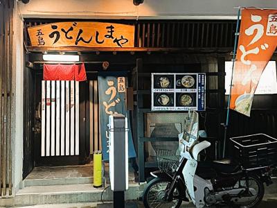 長崎市街の浦上飲食街エリアで今夜は何を食べるかと迷っていたら出汁の良い香りがして来て…、その誘惑に負けてしまい思わず入ってしまった「五島うどん しまや」です。