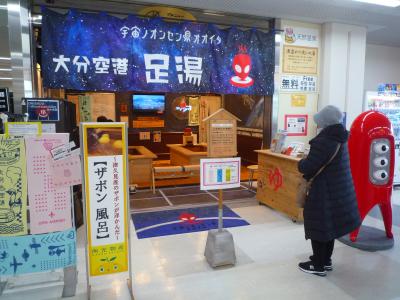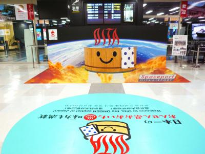 1階到着ロビーに在る無料足湯はおんせん県大分!をアピールするには人気のスポットでインパクトも強くて好いですね。