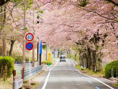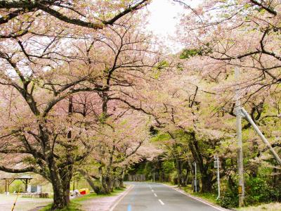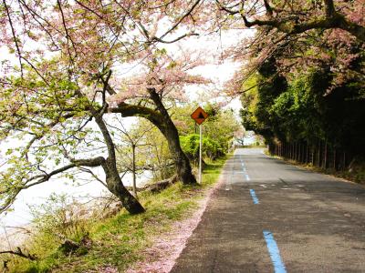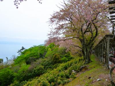 沿道を飾るのは約3000本の桜並木で、眼下には太陽の光に反射して輝く雄大な琵琶湖が眺望出来ますがこの日は生憎の曇り空でどんよりとした観えませんでした…。