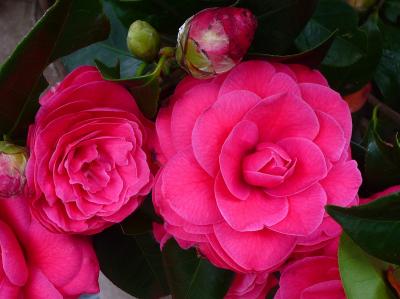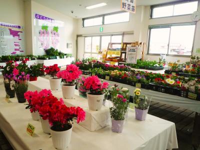 生花は切り花ではなく鉢植えが多く並べられて珍しいです…。