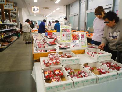 この季節のメインはやはり温室苺が華やかでトップコーナーにて展開されてます、みおしずく・紅ほっぺなど聞いたことがあるブランド苺ですが直売所の割には価格が安く無いですね?…。