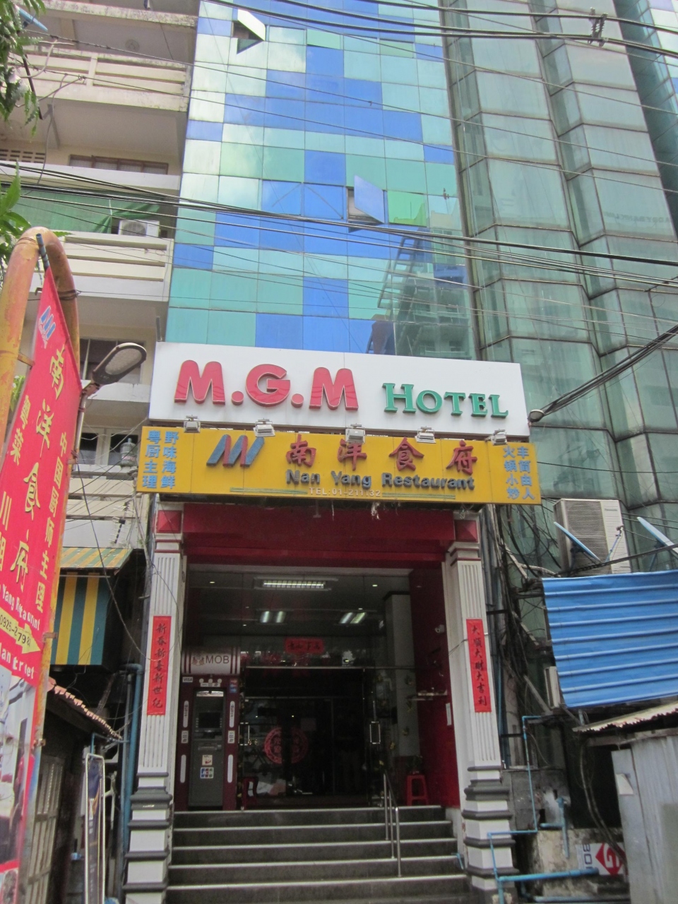スーレーパヤー辺りで中級ホテルを探しましたが、以前と違って値上がりが激しいのと内容がそぐわないので、エリアを広げて行った結果、西側のランマド-地区の「MGMホテル」に決めました(周辺には同等クラスのホテルが数件在ります)。