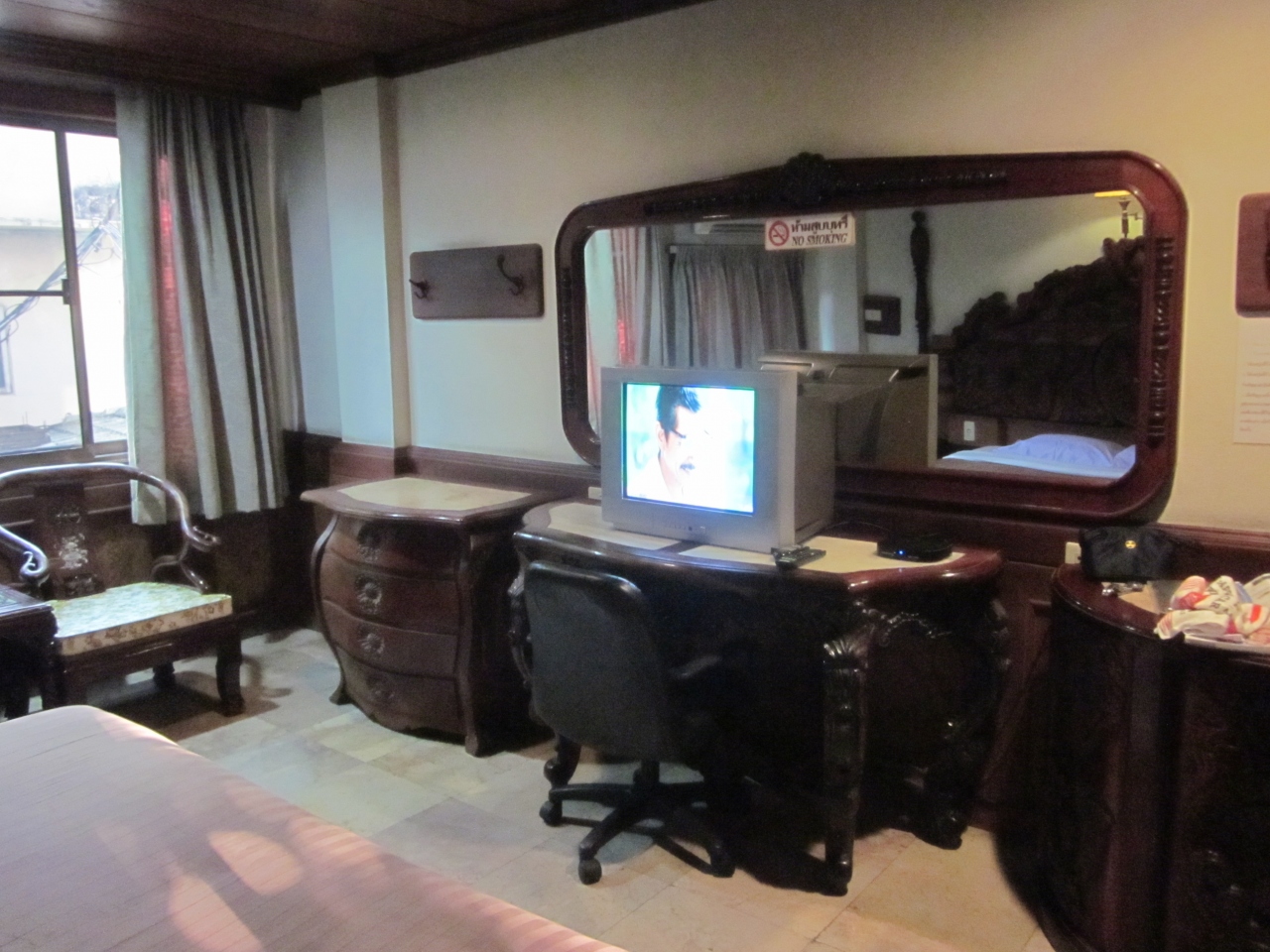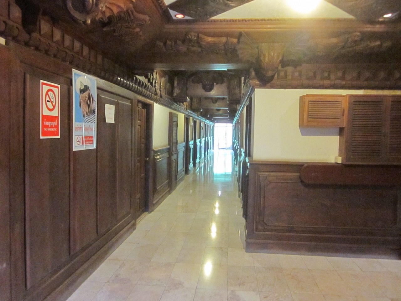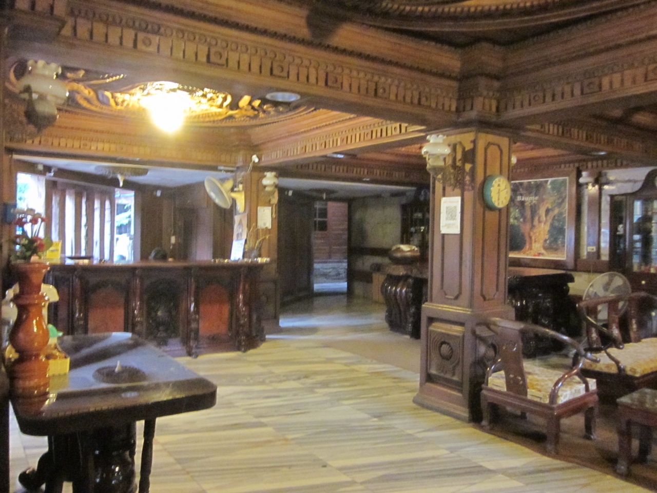 ホテルはかなり古びた雰囲気の印象を与えますが、ロビーから館内・部屋に至るまで、チーク材を惜しげもなく使って建てた贅沢な造りで、一見の価値はあります。
