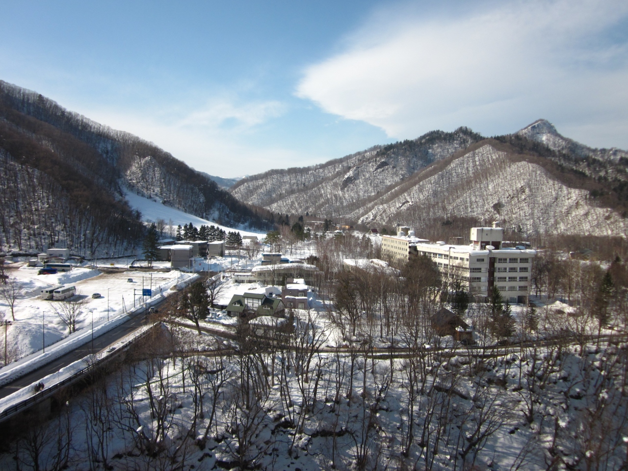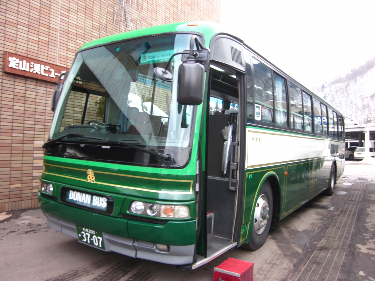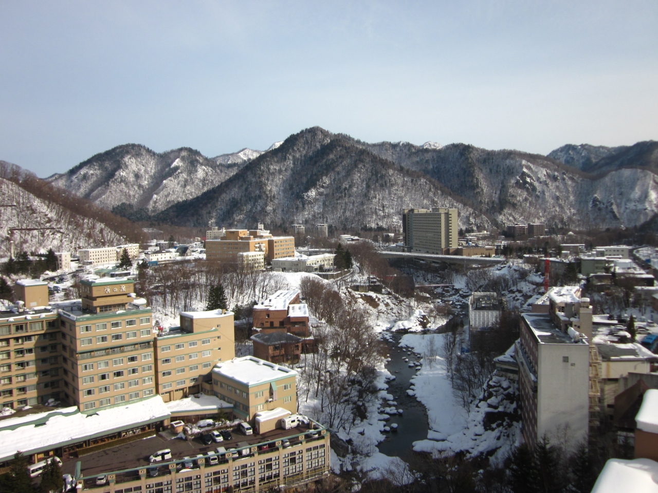 定山渓温泉の国道沿いに建つ赤煉瓦色した洋館風の大型ホテルは、どこからでも目立つ存在のラウンドマーク的。