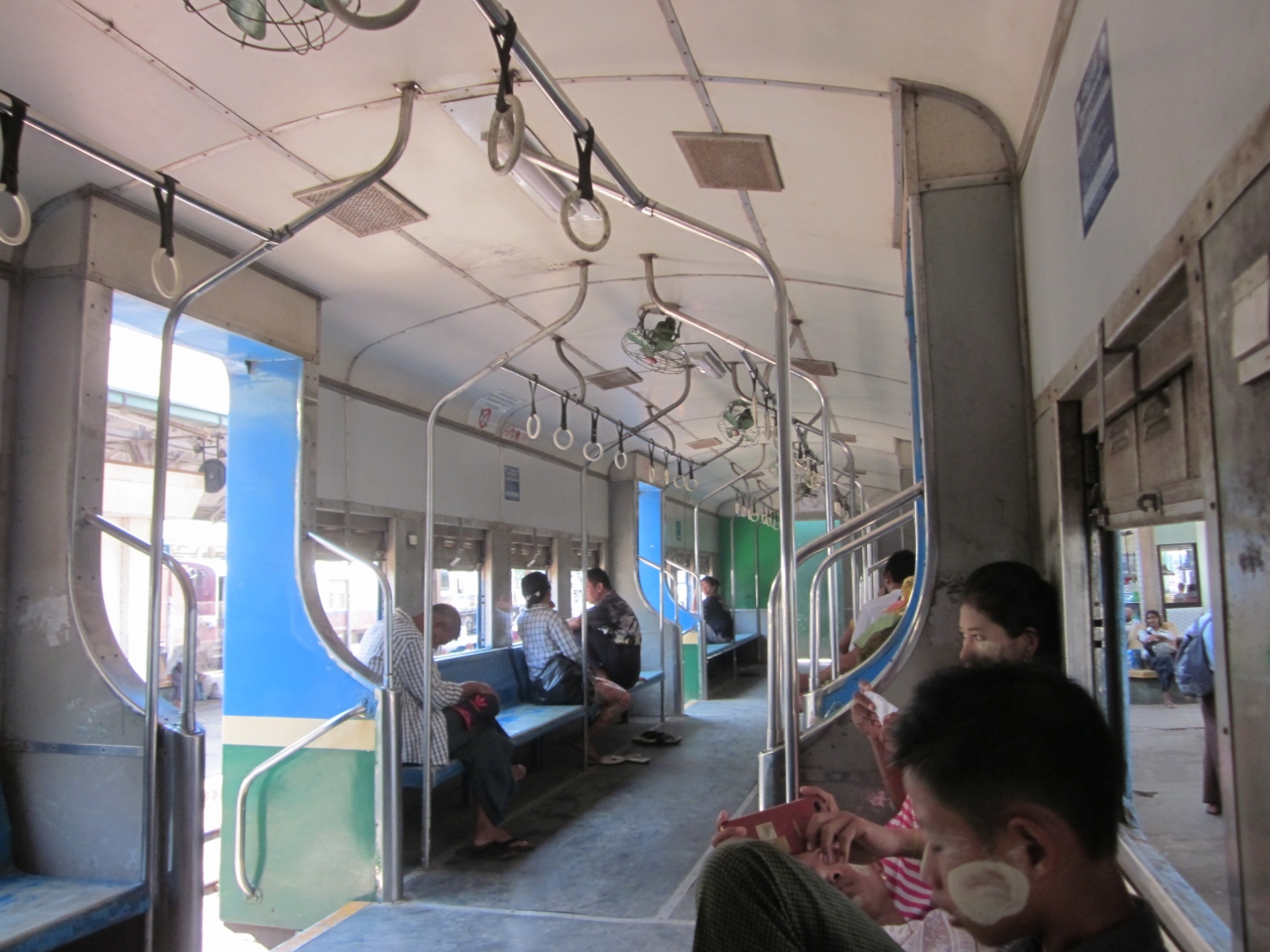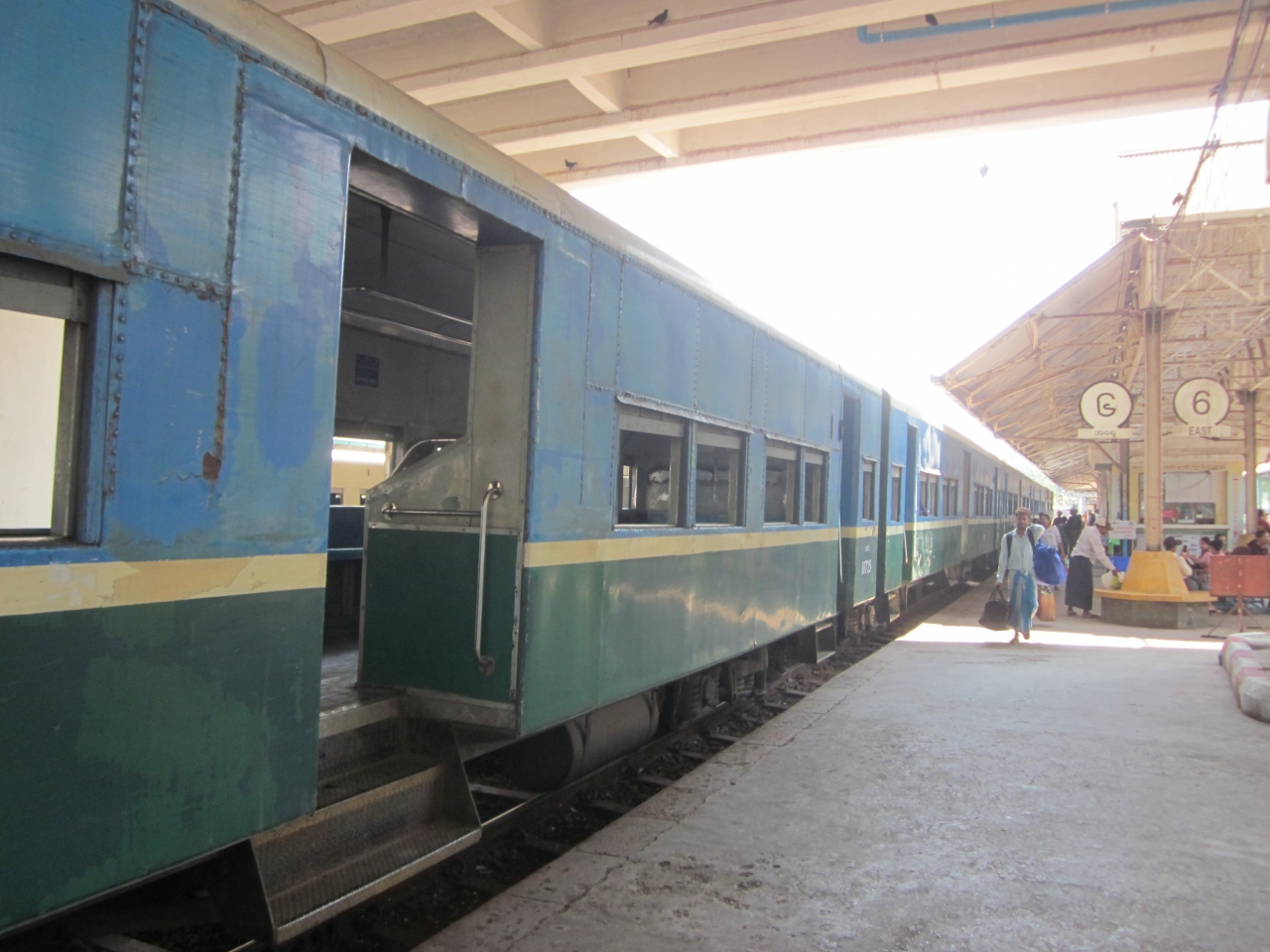ヤンゴン中央駅から郊外を3時間掛けて一周する「ヤンゴン環状線」で、普通列車のみで地元の足として利用されています。