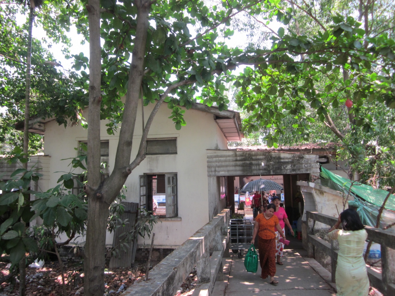 ヤンゴンループ(環状線)内回りに乗れば8つ目の駅「Yaegu駅・イエグー」で下車、戻った所の踏切を渡れば徒歩10分位と近くて判り易いです。