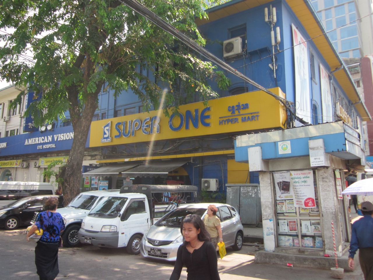 ダウンタウンのボーチョウアウンサン・マーケットの向かい側角に建つ老舗スーパー「SUPERONE」、同通りの”RUBYMART”と二分するほどのローカル色の強いスーパーマーケットです。