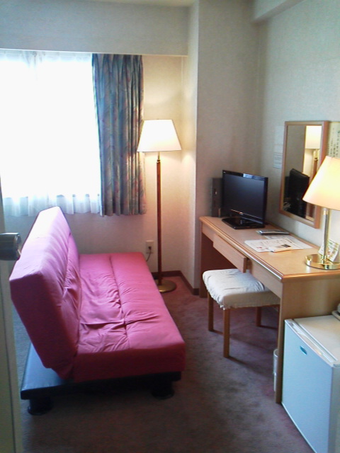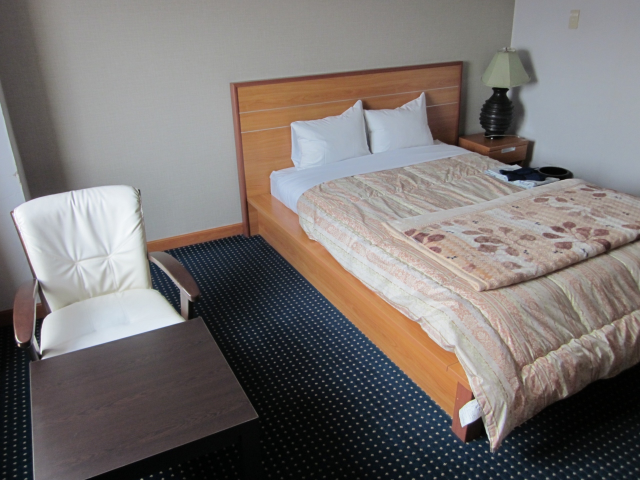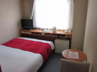 部屋はシンプルそのもので、ベッドに一人用の応接セット、小型TVと冷蔵庫が有るだけでアメニティーも最小必要限のみ。