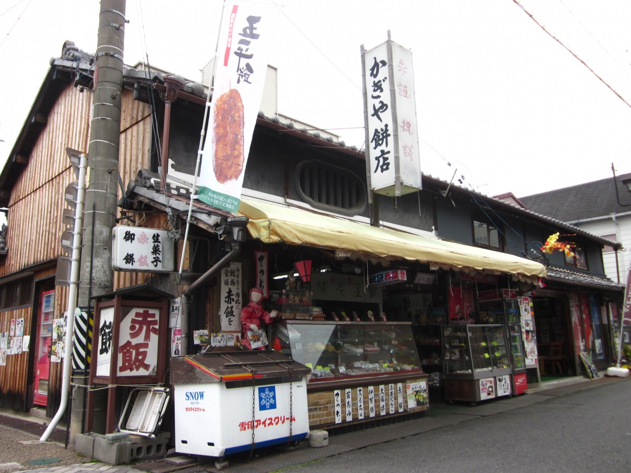 中之立町通り沿いに一際目立つ賑やかな幟は「かぎや餅店」~、カラフルな幟に赤飯や祝餅など書かれているので直ぐに判りますよ。