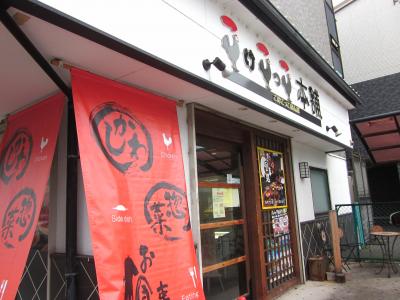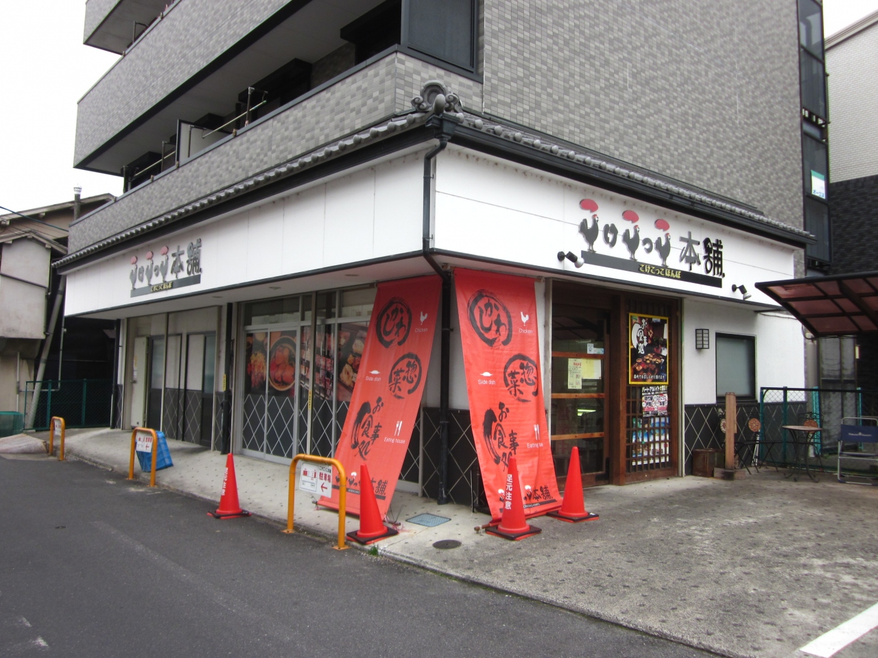 銀座通り沿いに在る鶏肉屋「こけこっこ本舗」~、店頭に赤い大きな垂幕が掛かってあるので判り易いですよ!。