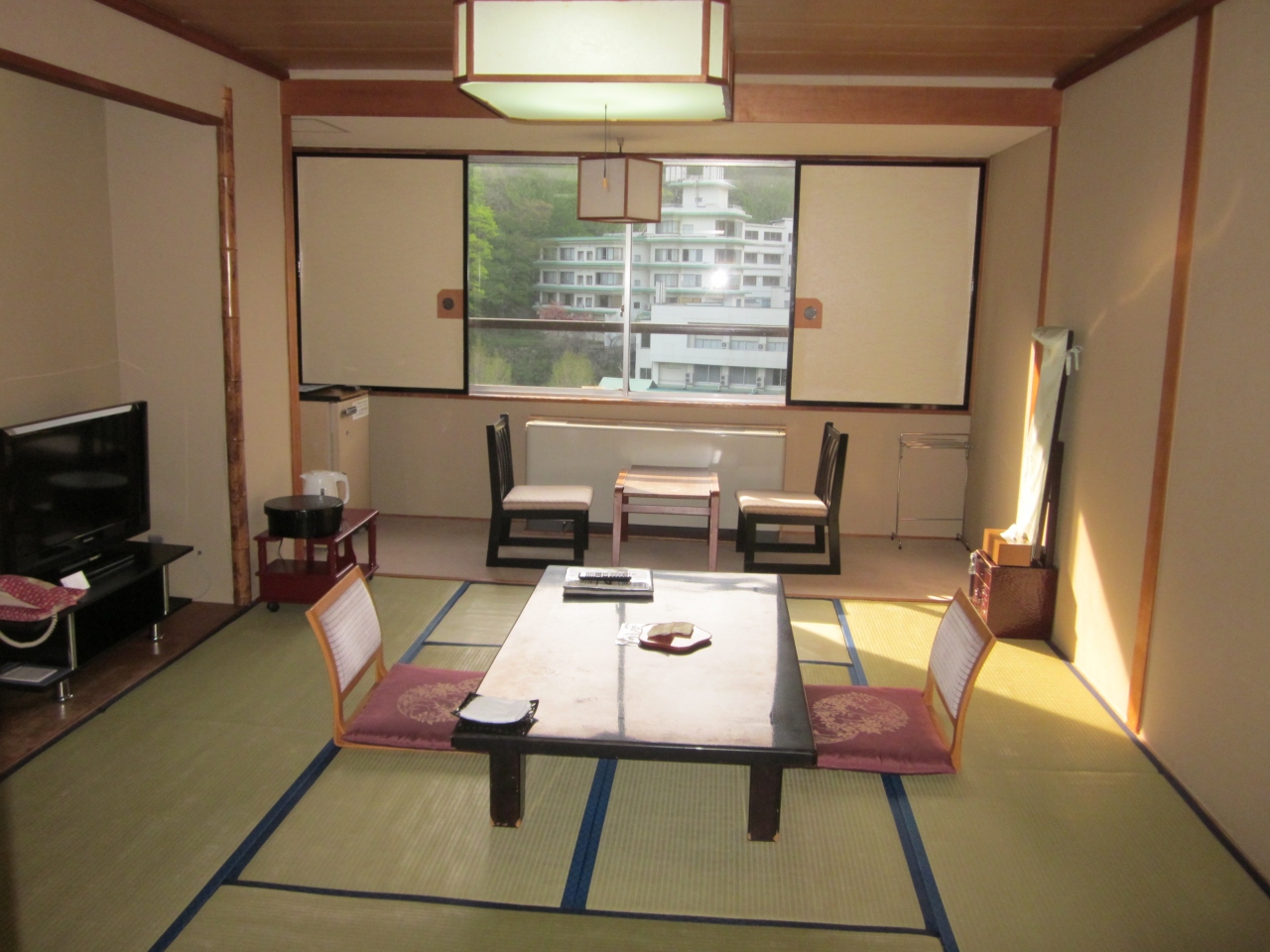 部屋は南館の和室10畳、かなり年季が入った昭和の雰囲気がたっぷりの標準的な造りです?…、一部畳も擦り切れてますが(愛嬌?)、清掃はしっかりされてますので問題有りません。