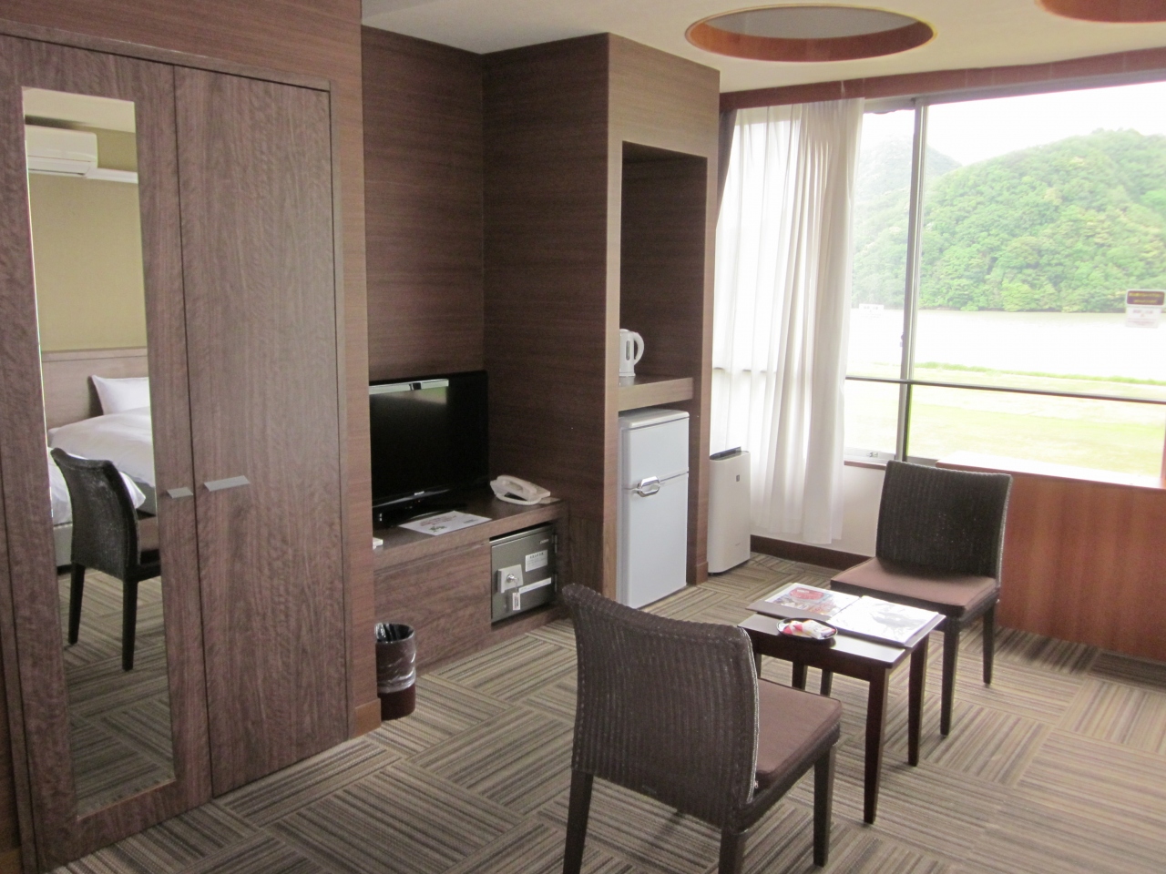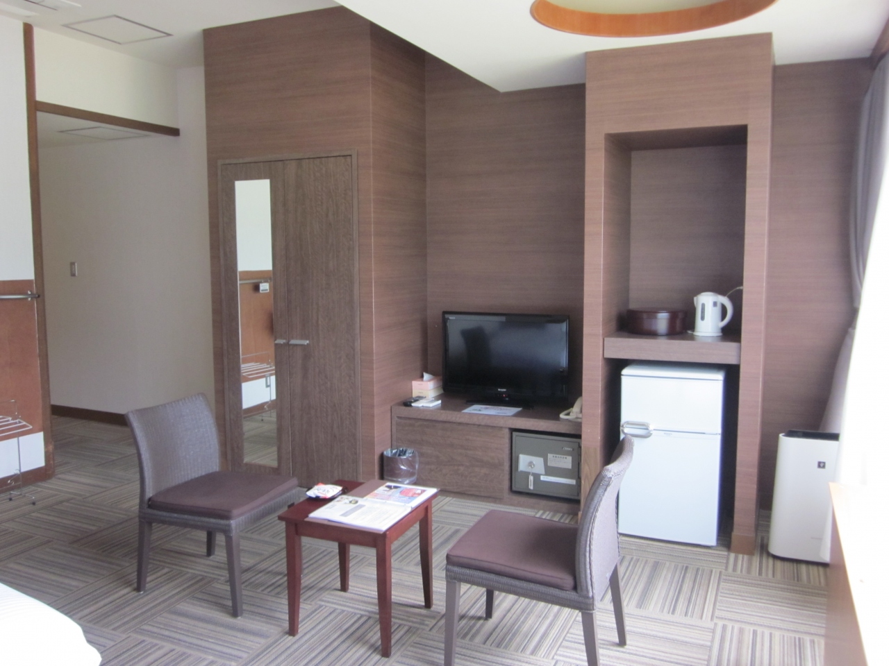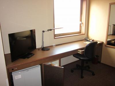 液晶TVは韓国オリオン製で、おまけに部屋ではPCが使用不可(ランケーブル差込が無い為)で、ロビーに降りないとWiFiが使えない不便さです。