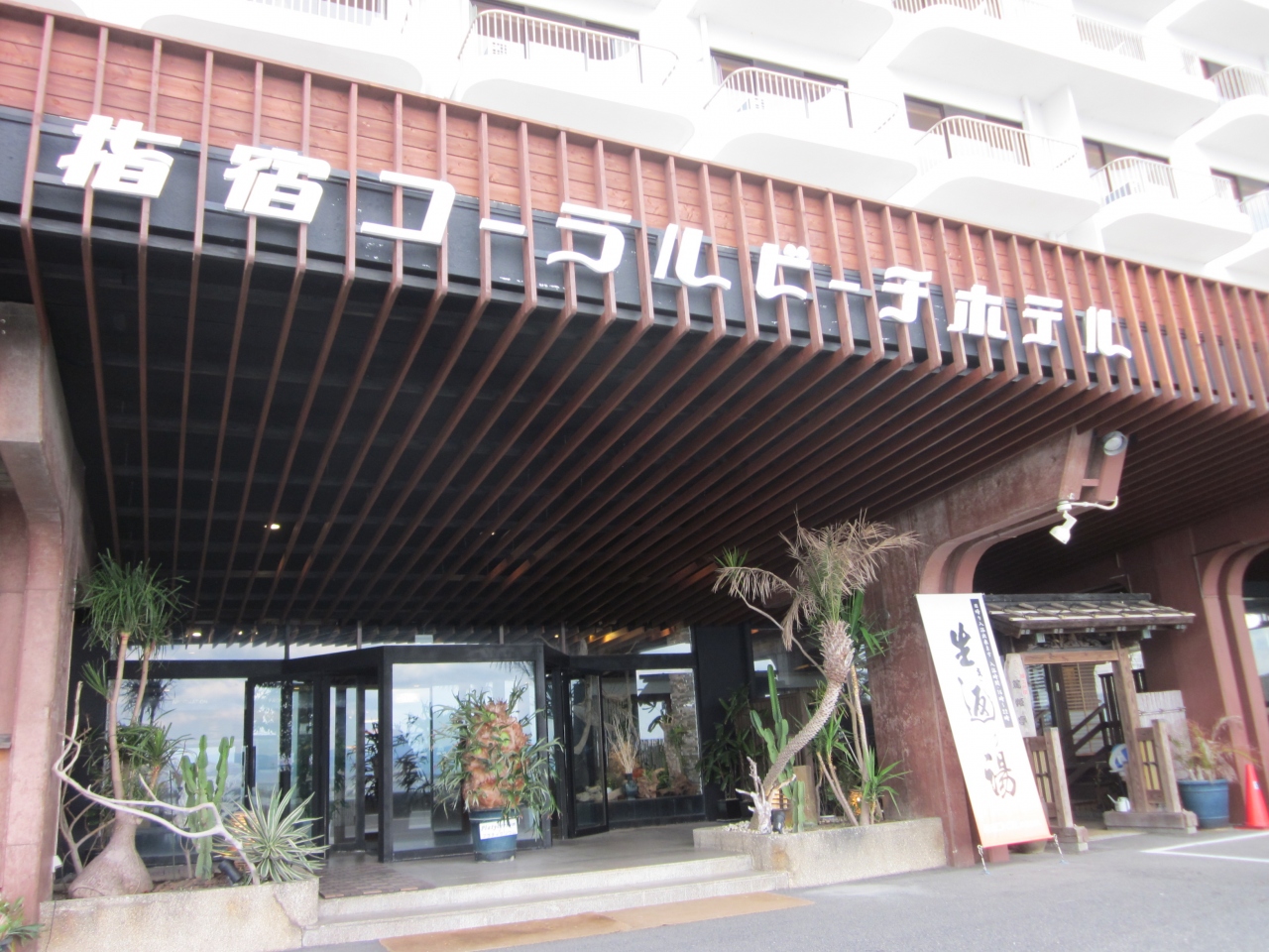 指宿温泉街の海沿い建つ6階建てのコンパクトな宿~、駅からも徒歩圏内で、近くには砂むし温泉で有名な「砂楽」にも行けるので利便性は高いです。