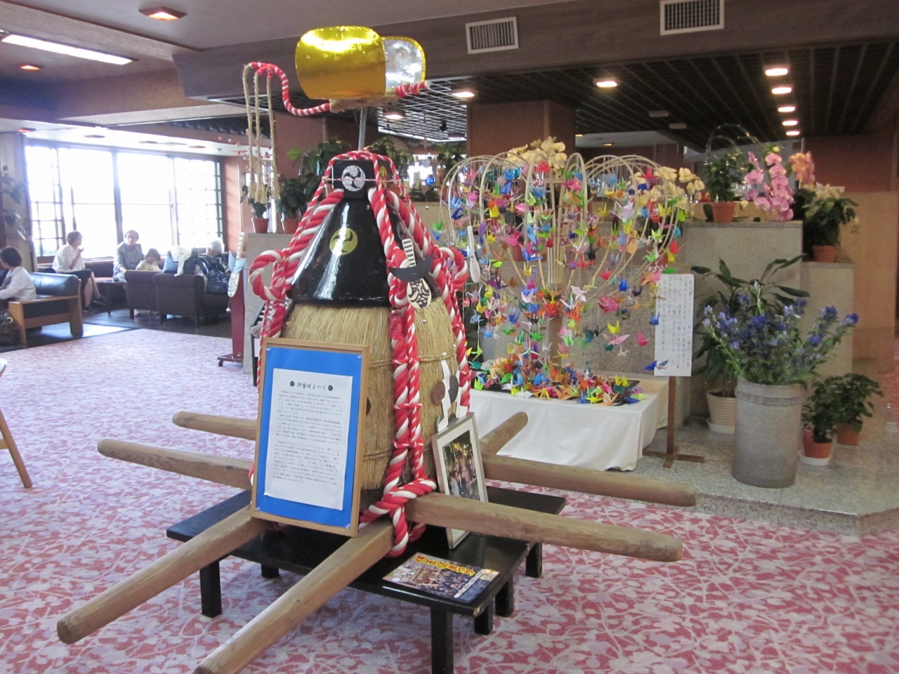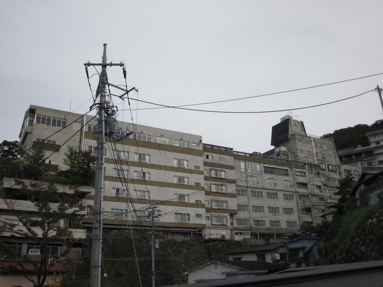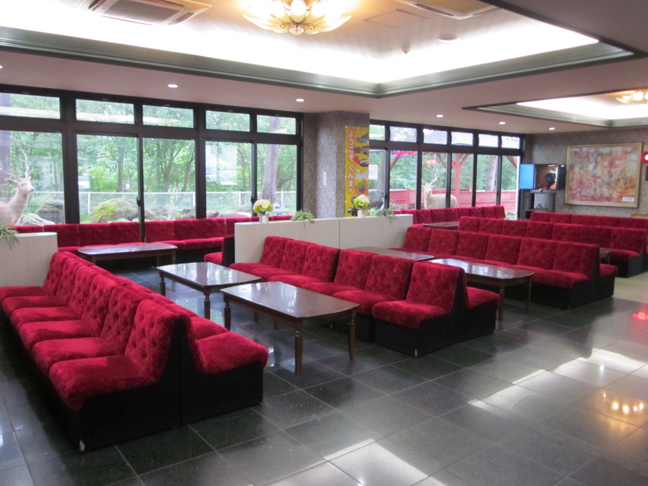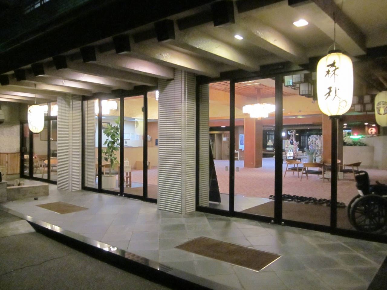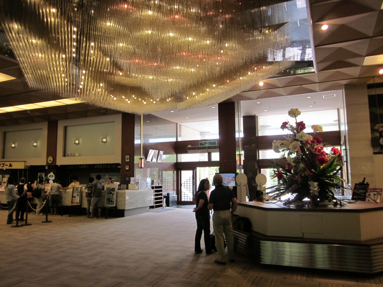 玄関正面から見渡すとかなりの大型ホテル~、ロビーに入ると高い天井から吊り下げられた煌びやかなシャンデリアに全面ガラス張りに映える庭園が、今は無き昭和の繁栄、老舗旅館を彷彿させますね?…、きっと当時は連日団体さんが押し寄せたのでしょう~。
