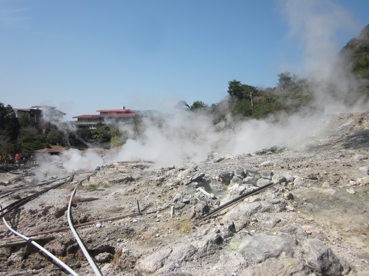 雲仙地獄めぐりは6つの地獄から成っていて、遊歩道にてぐるっと一周出来るので良い散歩に成ります。