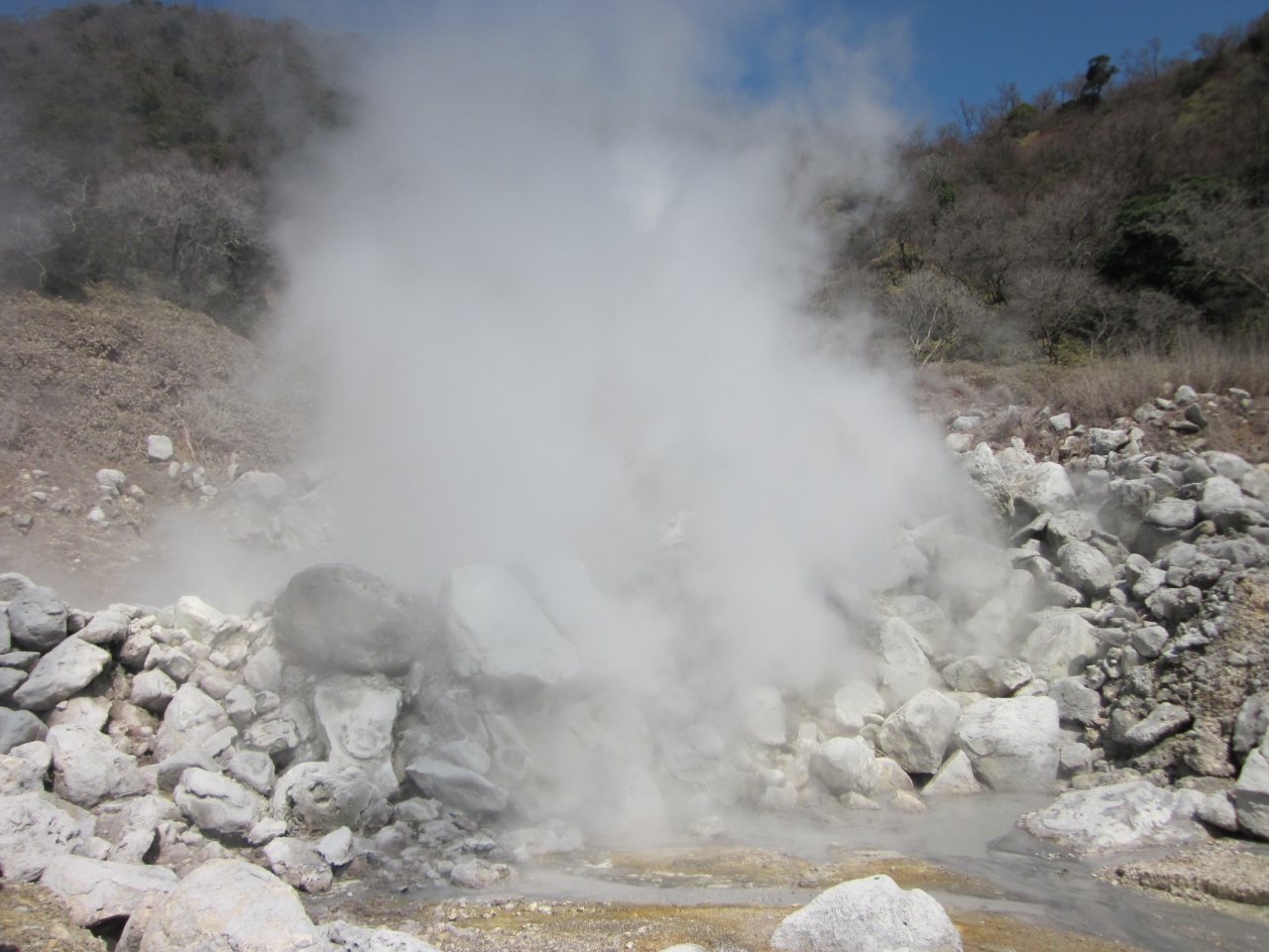 但し、他と違うのはその源泉の数が多いので、白く上がる噴気のボリュームが凄いです!。風向きによっては霧の中にいるような感じに成りますよ!。