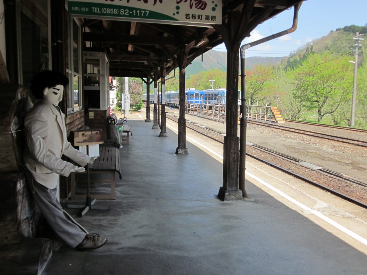 また、鉄っちゃん(鉄道ファン&オタク)なら、ここに車を止めて若桜鉄道に乗車して、郡家や鳥取まで行って返って来るのも可能です(若桜駅にも無料駐車場が在りますが台数が少ないです?)。