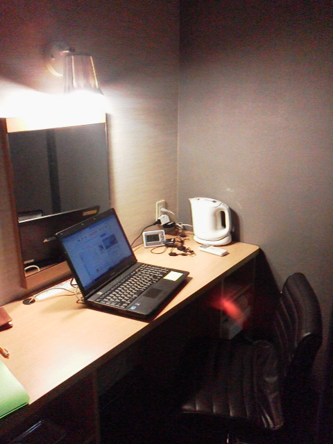 PCも無線ランなので、仕事も問題なく出来ました。但し、部屋の照明が間接なので暗いです…、せめてテーブルライトが有れば有難いのですがね~?。