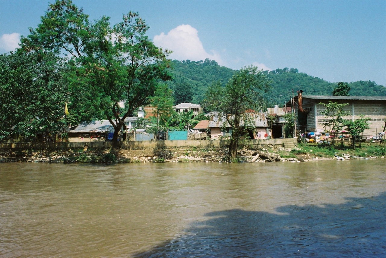 ホテルから奥へ行くと、ごく普通の人々の生活が見られ、一番奥には小さな公園が有って、対岸のミャンマーが直ぐそこです。- 旅行時期