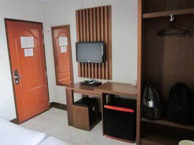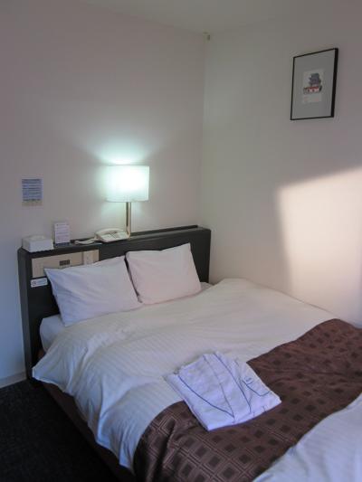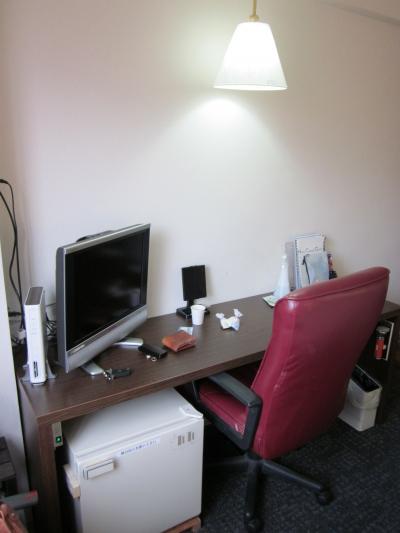 部屋はドアを開けていきなりベッド~、小さめのテーブルに液晶TV・ミニ冷蔵庫とАCのみ。コンパクトでシンプルな造りですが、そこはブティック風インテリア?…、何となくのお洒落な感じです。
