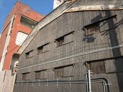 姫路では老舗の醸造酒屋で、昔ながらの佇まいが残っている市内でも貴重な建物群で~、高い倉庫の上にでかい「ナダギク」の看板が上がっているので目印になります。山陽電鉄沿いなので、電車からよく見えますよ。