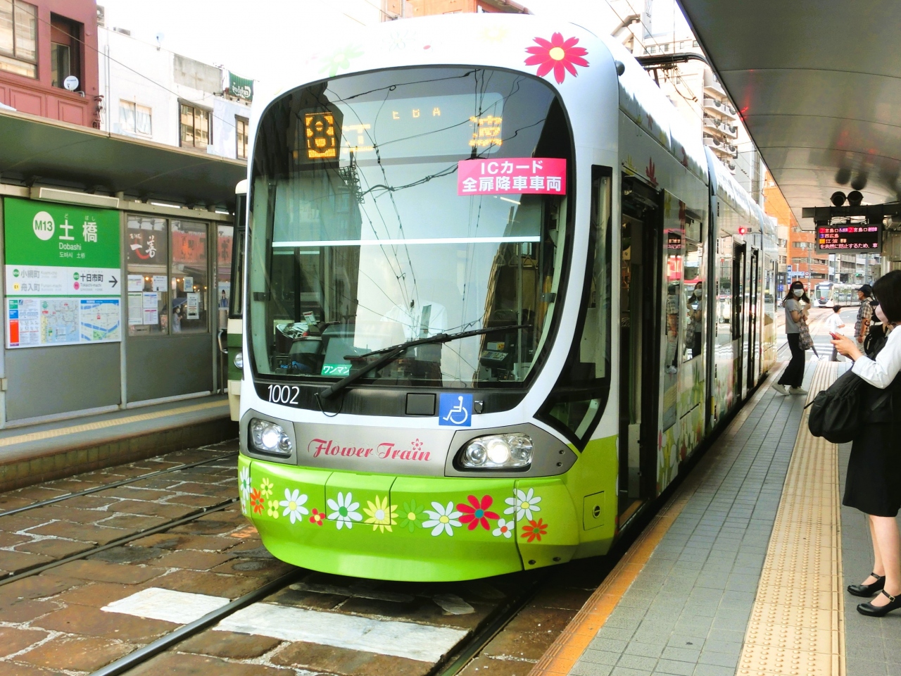 - 新型連接車両が多く電停への乗降はスムーズです!