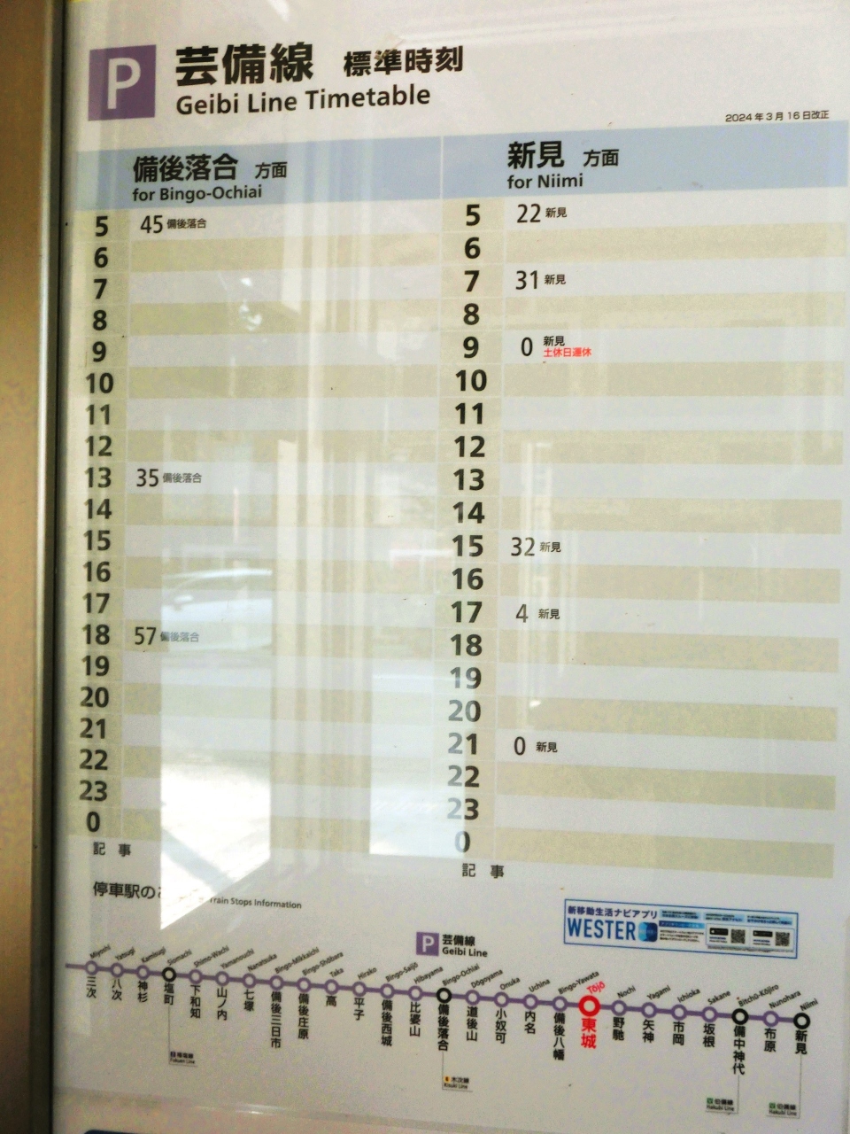 また、塩町駅から分岐する福塩線の列車も運行上は当駅を起点とする為に全ての列車が当駅発着と成るために超える場合は乗換が必要です。