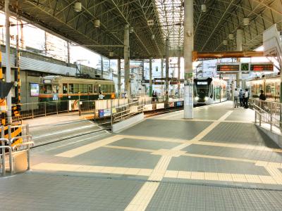 横川駅電停や広島港電停同様の大屋根付きの立派なもので雨にも濡れない乗り換えがスムーズな頭端式ホーム2面2線と島式ホーム2面4線の4面6線の地上駅に成りました。