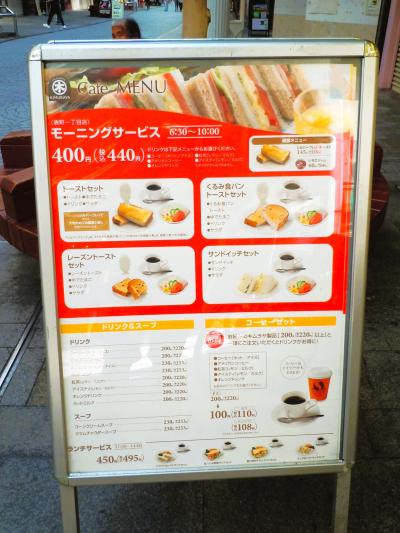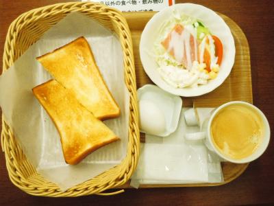 今回は数十年ぶりにモーニングをいただきました~、4種類の中からトーストモーニングにしましたが食パンが美味しくてゆで卵・ミニサラダ・珈琲で¥400ならお得です。