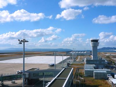 逆に反対側には港・神戸の町並みや六甲の山並みが迫る都会的な景観が楽しめ、西側を見ればはるか明石海峡大橋も観ることが出来る海上空港ならではの利点が活かされています。