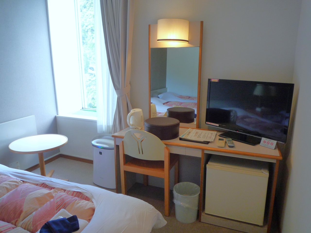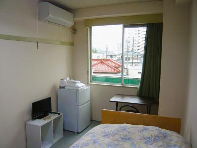 部屋は個室でベッド・デスク・TV・冷蔵庫・電気ケトル・A/Cとアメニティーがセットされた実にシンプルな施設です。