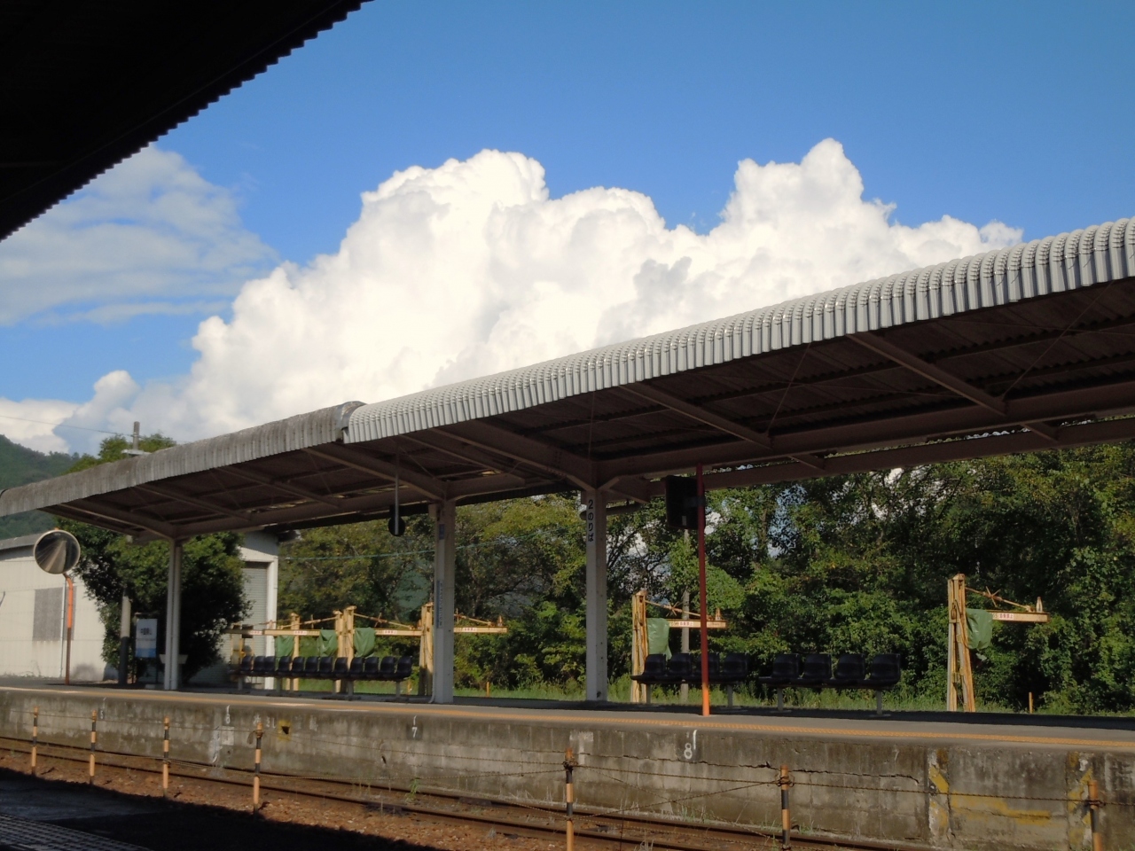 プレハブ建ての物置小屋のような待合室が在るだけで駅と言うよりは停車場のようです。日陰も出来ないほど逃避する場も無くただ汗が噴き出して堪りませんでした…。