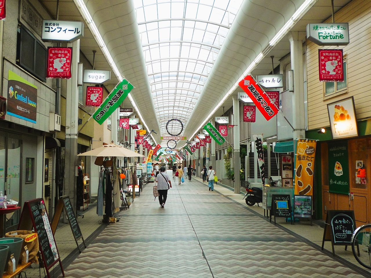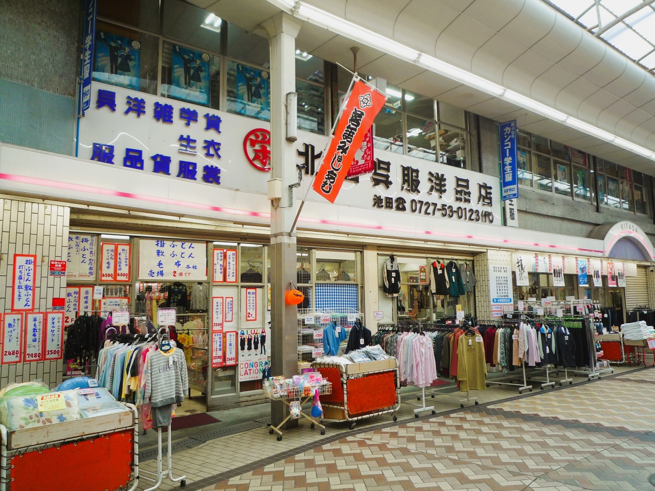 阪急池田駅前から国道176号線を渡り北へ伸びるアーケードで覆われた「池田栄町商店街」は旧城下町・宿場池田に相応しい歴史ある経緯を持つ町の中心的な役割も担って来たところ。