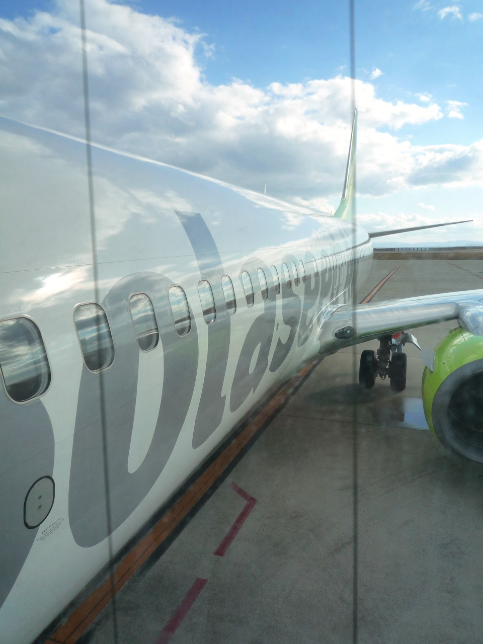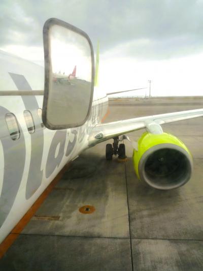 機材はB737-800型機で最新鋭機も含めて14機保有し、中通路両側に3席づつ配置された全エコノミークラス174席で、座席間隔は広めの81cmで余裕です。但し、クッションが薄いので背もたれも含めて腰痛持ちにはきついかも?…。