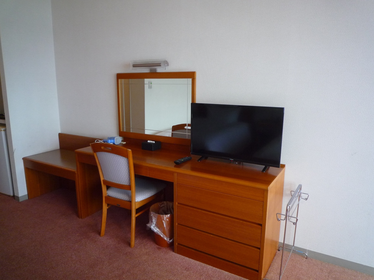 しかし、アメニティはタオル2種類のみと緑茶テイーバッグと水ボトルしかなく寂しいです?。