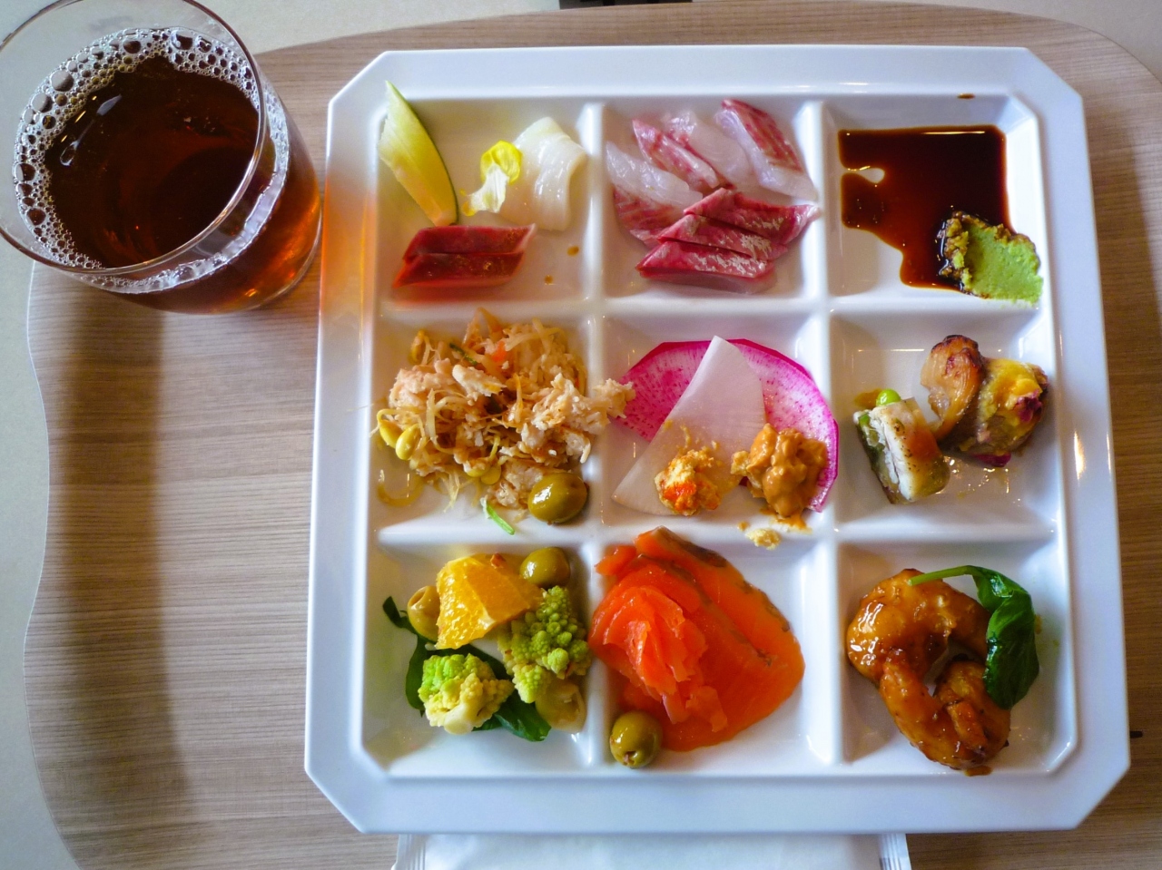 メニュー構成は和食は少なく洋・中・アジアンが多くて、ライブキッチンではローストビーフとハンバーガーという必要あるのか?と問いかけたくなるメニューです。