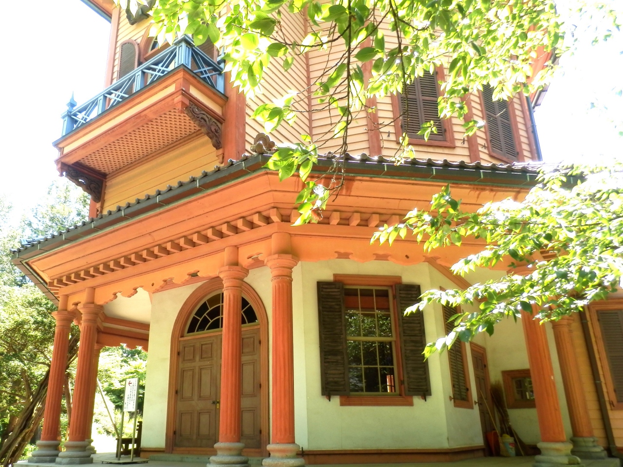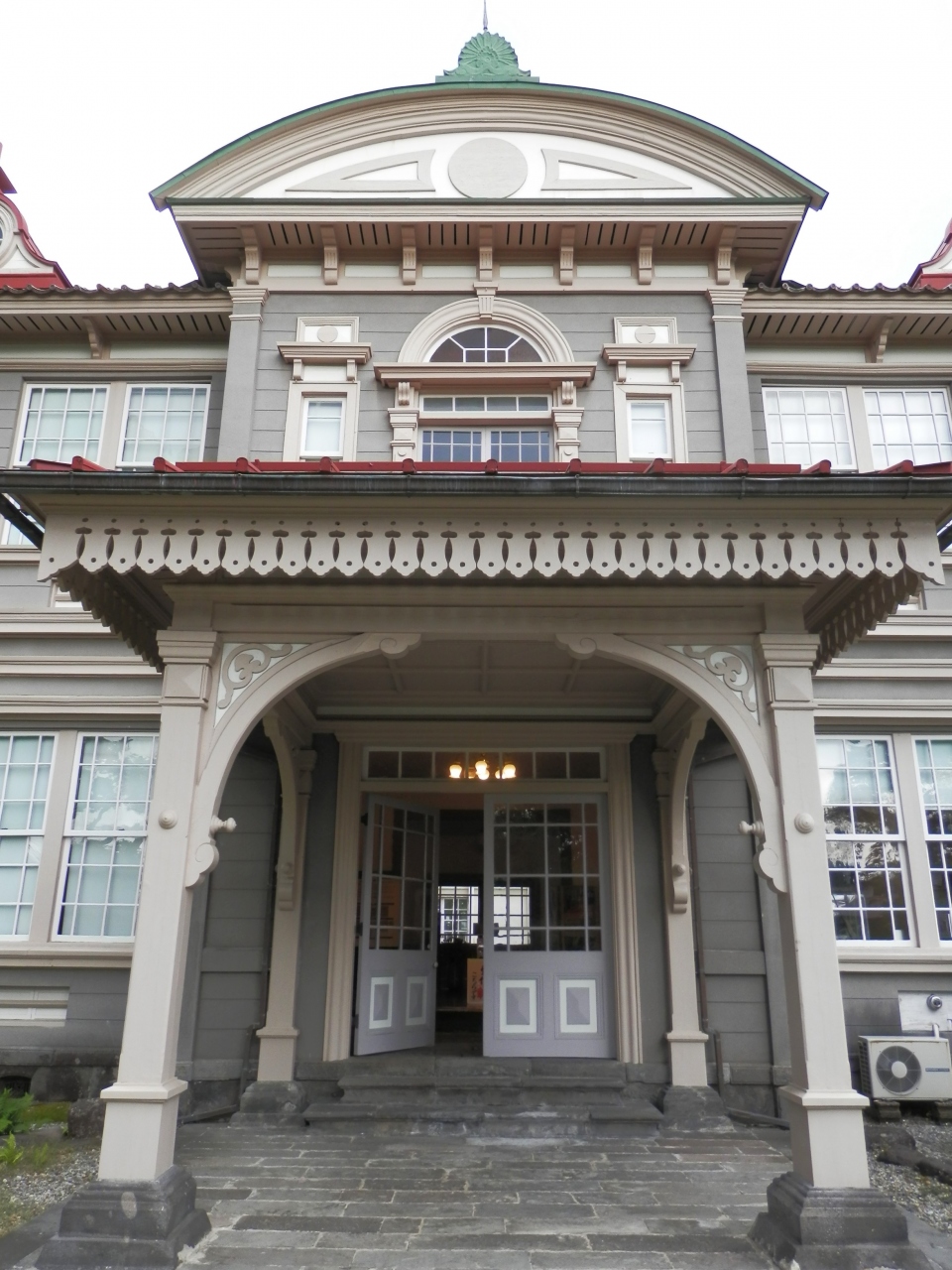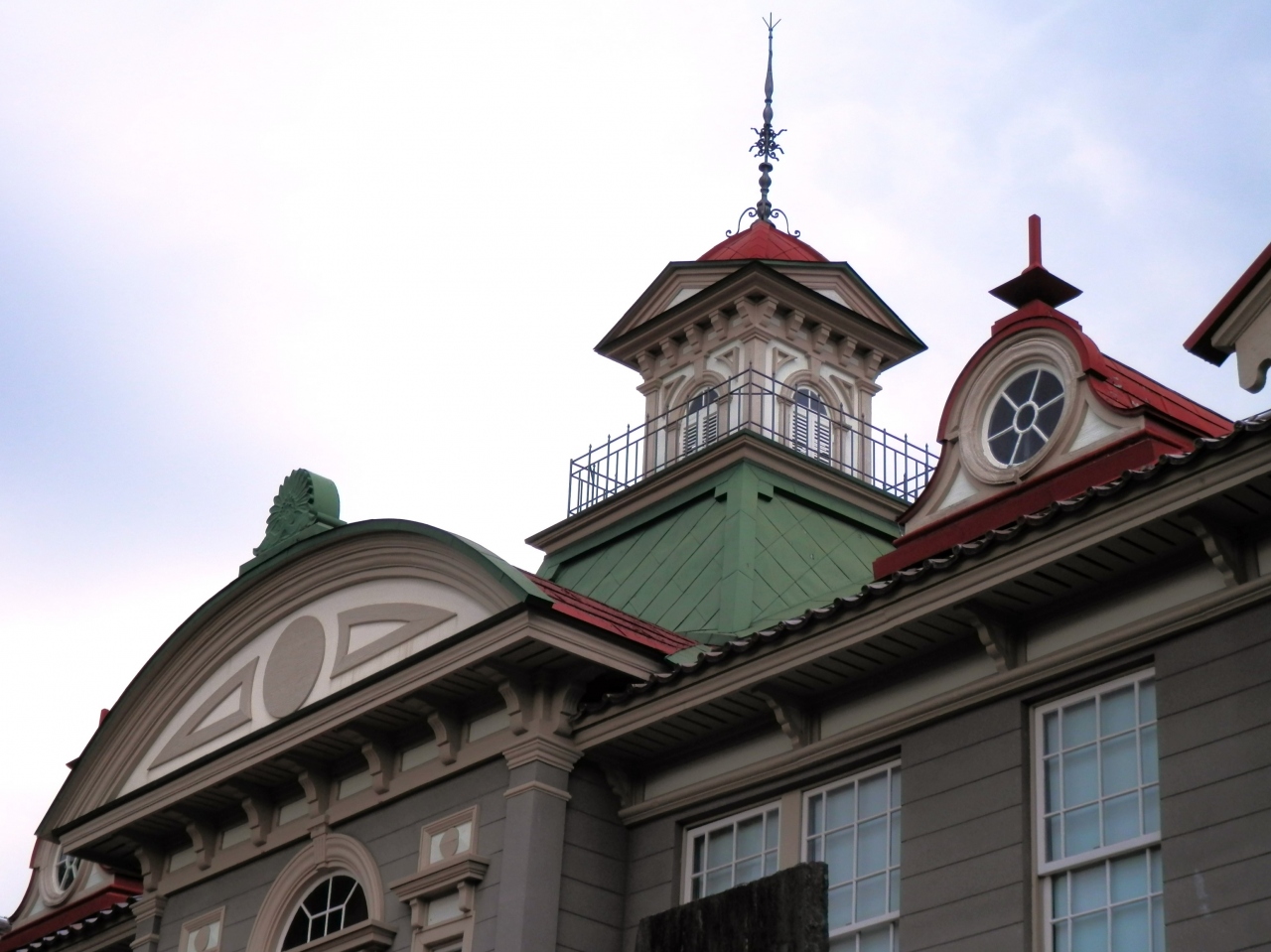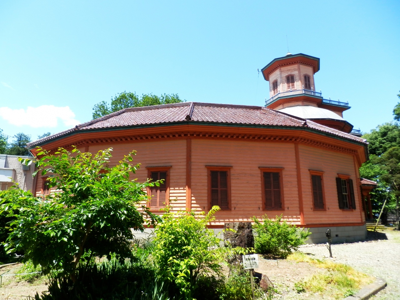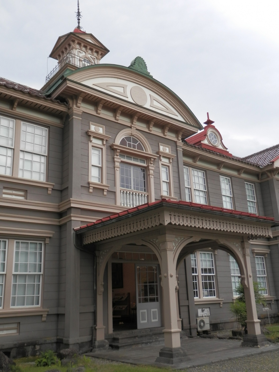 遺構が好きで全国の様々なものを見学しましたがデザイン的にも色彩的にもこれほど特徴のある和洋中折衷建築は類を見ないものです。- 旅行時期