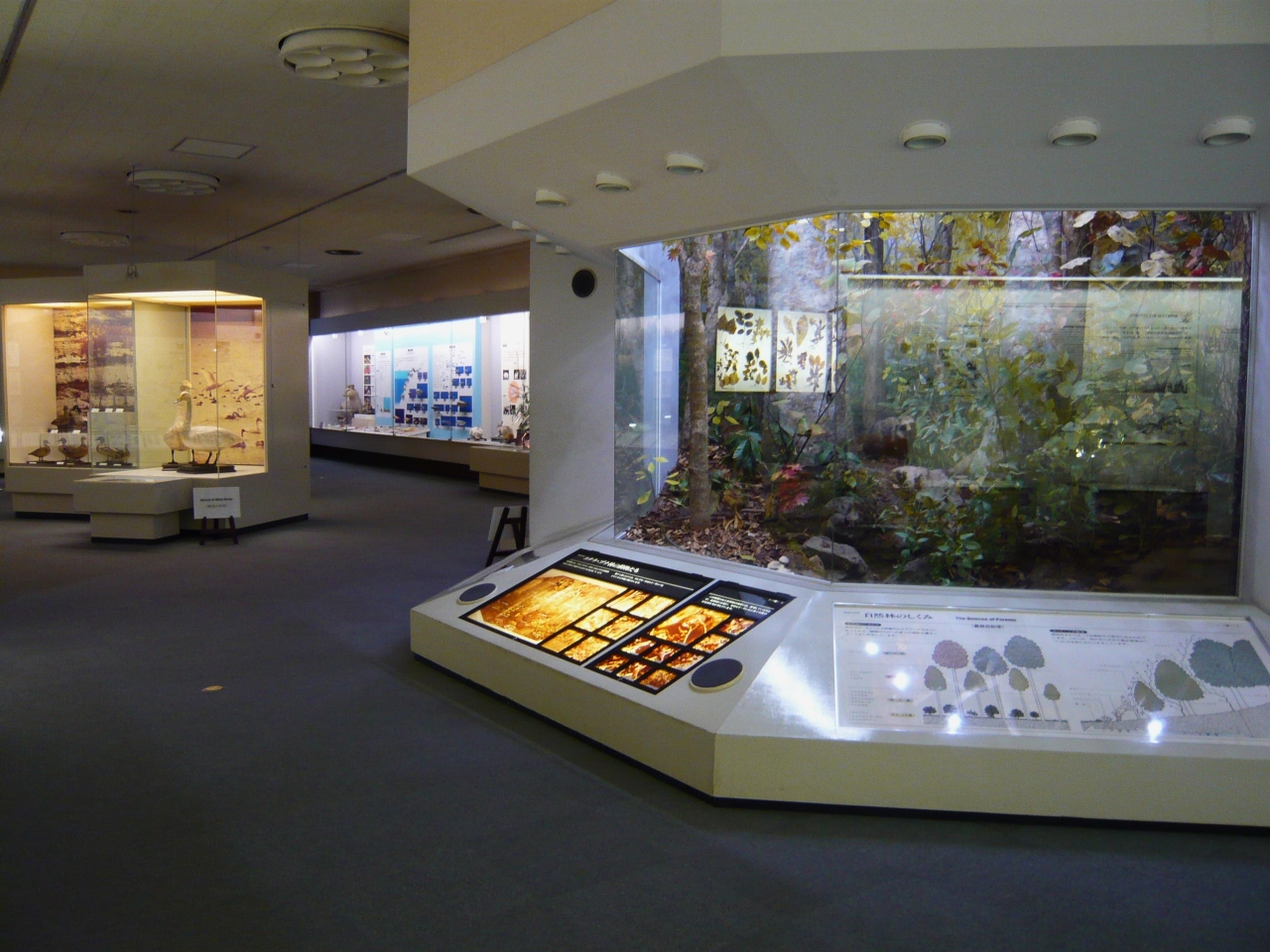 展示内容は一般的なVTRの視聴覚にジオラマ解説や標本や剥製などで判り易くされてます(植物・昆虫などの標本は豊富でちびっ子達は好きでしょうね!)。