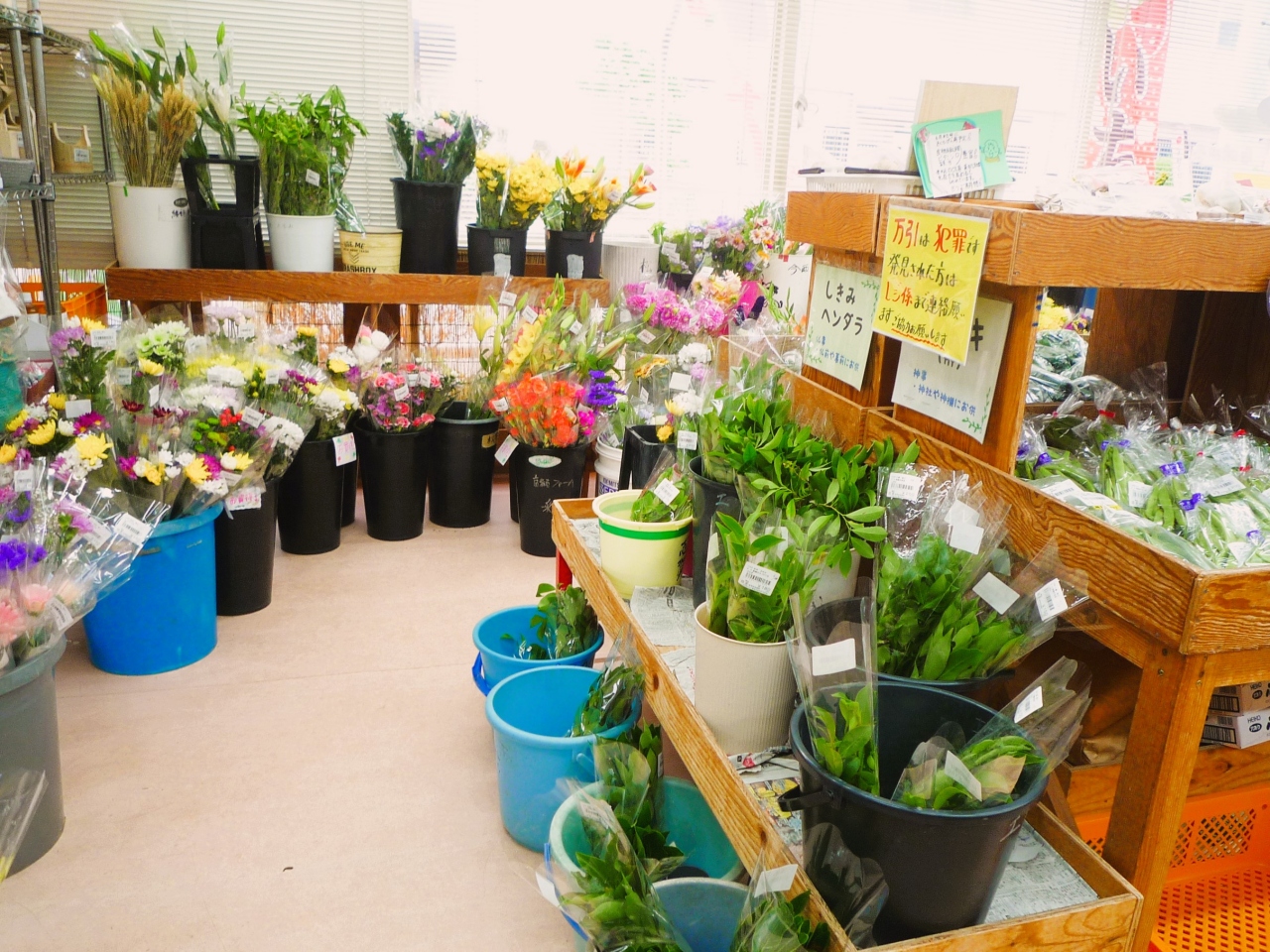 - 旬の野菜・生花・加工食品などが揃う!