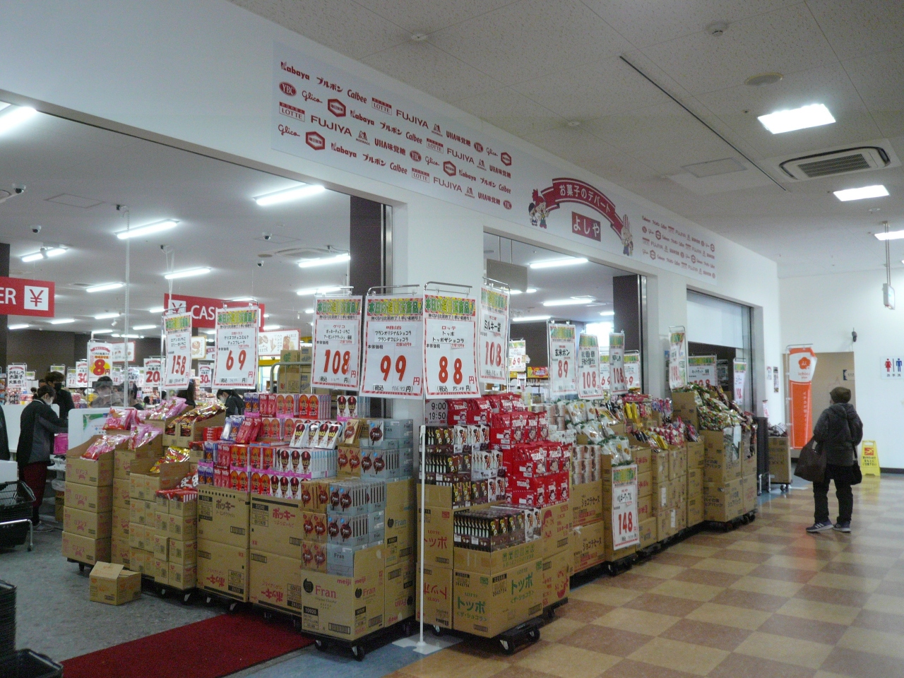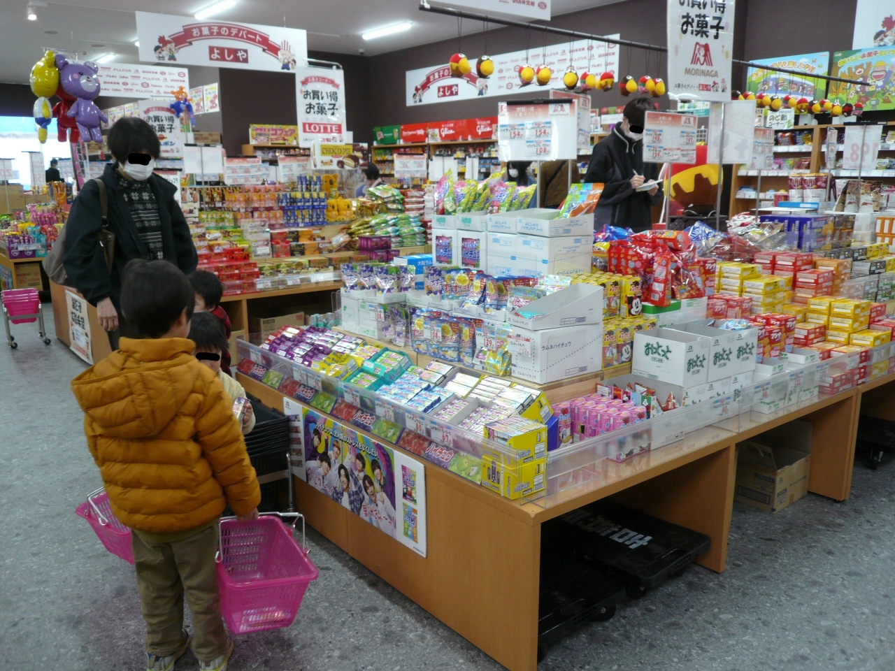 お菓子のデパートよしやは大阪・北摂を中心に店舗展開する格安なお菓子販売店で、駅前や商店街などでよく見掛けます。