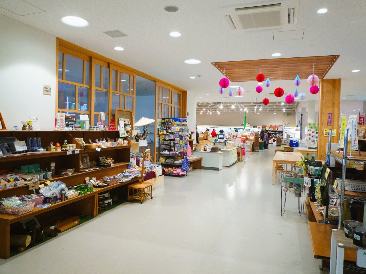 また、道の駅の人気のバロメーターである特産品の直売所も広いスペースで併設されているので地元産の野菜や果物に加工品・手芸品なども充実してます。