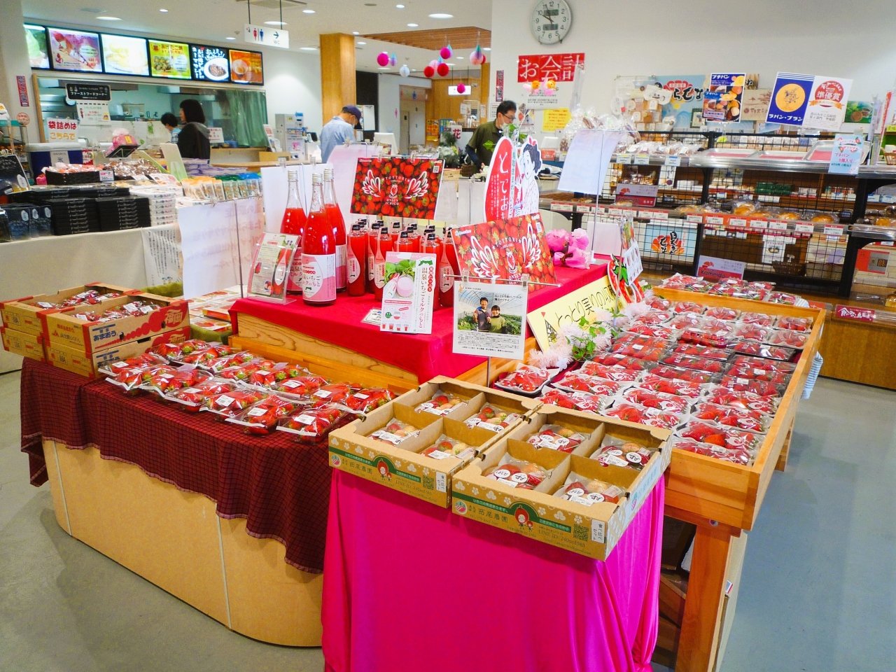 この時期は春の果物・苺のパックがメインコーナーにて販売されていました。
