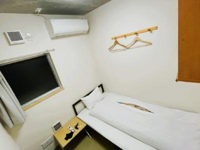 部屋は超シンプルが売りなので何もありません~、畳敷きでベッドと小さなテーブルとA/Cに収納戸棚のみでです(Wi-Fiは利用可)。