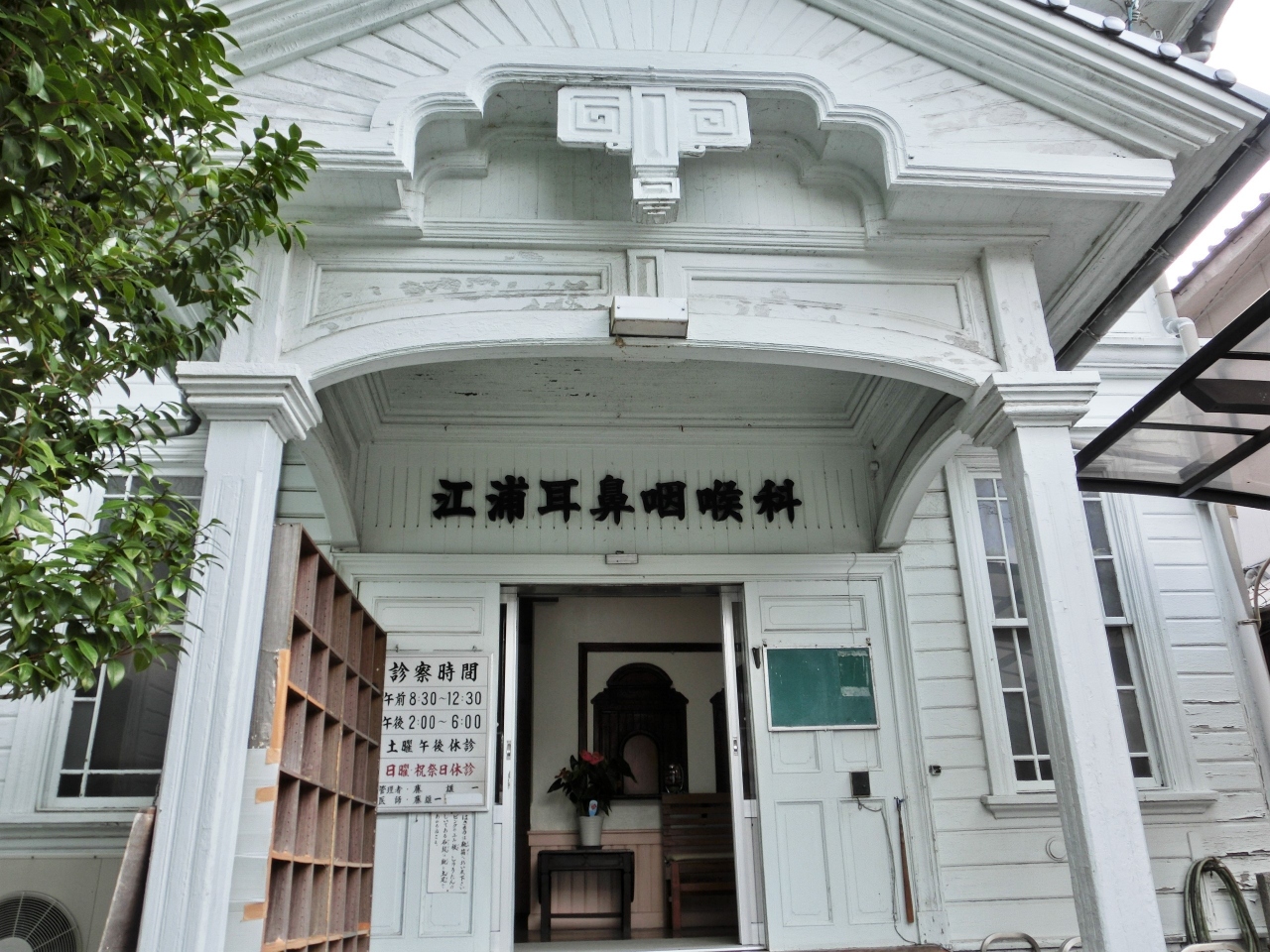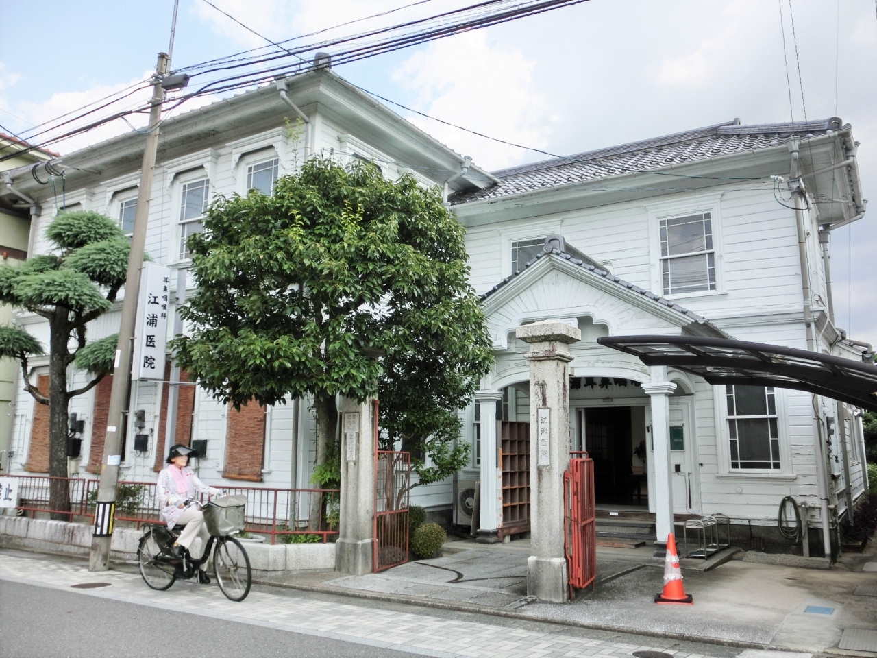 旧長崎街道上の殿町レトロと呼ばれる洋館が建つ界隈で淡いグリーン色の洒落た雰囲気を醸し出す「江浦医院」は唯一の現役医院として今も開業中が素晴らしいです。
