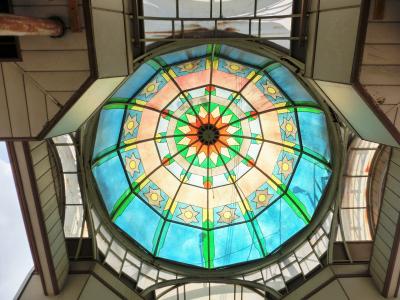 半円状の高い位置の屋根と所々にドーム型のステングラスが施された凝った作りは当時の隆盛であった繁栄が偲ばれる華やかな遺構です。