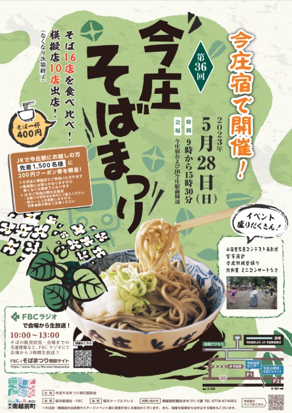 越前・北国街道の宿場町である旧今庄宿で開催される「今庄そばまつり」は年に一度収穫される蕎麦に合わせてそれを祝うイベントとして今庄蕎麦を振舞う祭りのようです。
